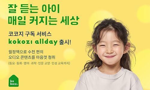 글로벌 오디오 콘텐츠 플랫폼 코코지는 개인화 기반 월간 구독 서비스 ‘코코지 올데이’를 출시했다고 12일 밝혔다. ’코코지 올데이’는 ‘잘 듣는 아이, 매일 커지는 세상’이라는 비전 아래 기획된 오디오 콘텐츠 구독 서비스다. 스크린에 과도하게 노출된 어린이들이 하루 일과 속에서 오디오 콘텐츠를 자연스럽게 접할 수 있도록 설계되었다. 동요, 동화, 영어, 과학, 인문 교양, 인성 교육 등 연령과 관심사에 따라 큐레이션 된 다양한 장르의 오디오 콘텐츠를 제공하며, 뽀로로, 핑크퐁 등 인기 캐릭터 IP는 물론 코코지 키즈 콘텐츠 전문팀이 제작한 ‘코코지 오리지널’과 어린이 과학동아, 마법천자문 등 파트너십을 통해 제공되는 독점 콘텐츠까지 포함된다.