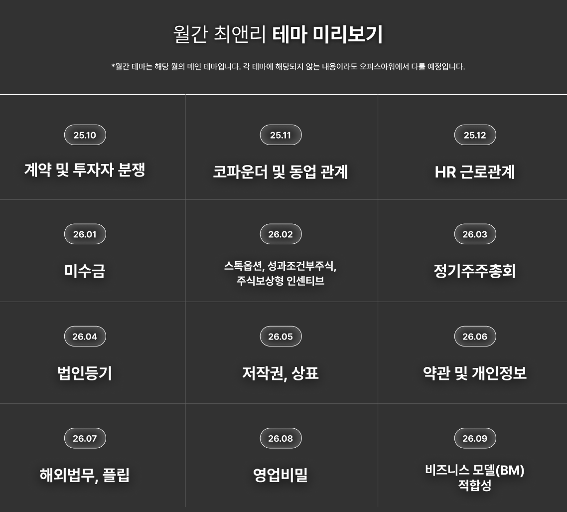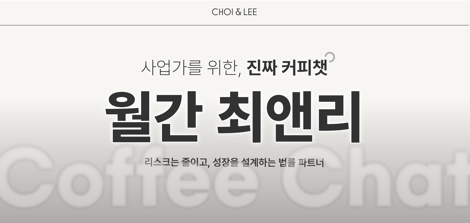 최앤리는 “사업가와 함께 성장하겠다” 라는 비전을 창업 때부터 새긴 유일한 로펌입니다. 처음부터 “여러분의 사업이 잘 되어야 최앤리도 잘 된다" 라고 생각했습니다. 월간 최앤리도 이러한 배경에서 탄생했습니다. 월간 커피챗에서는 성장하는 사업가를 위해 법률가의 시선으로 사업을 ‘엑셀러레이팅’ 해드리고자 합니다.